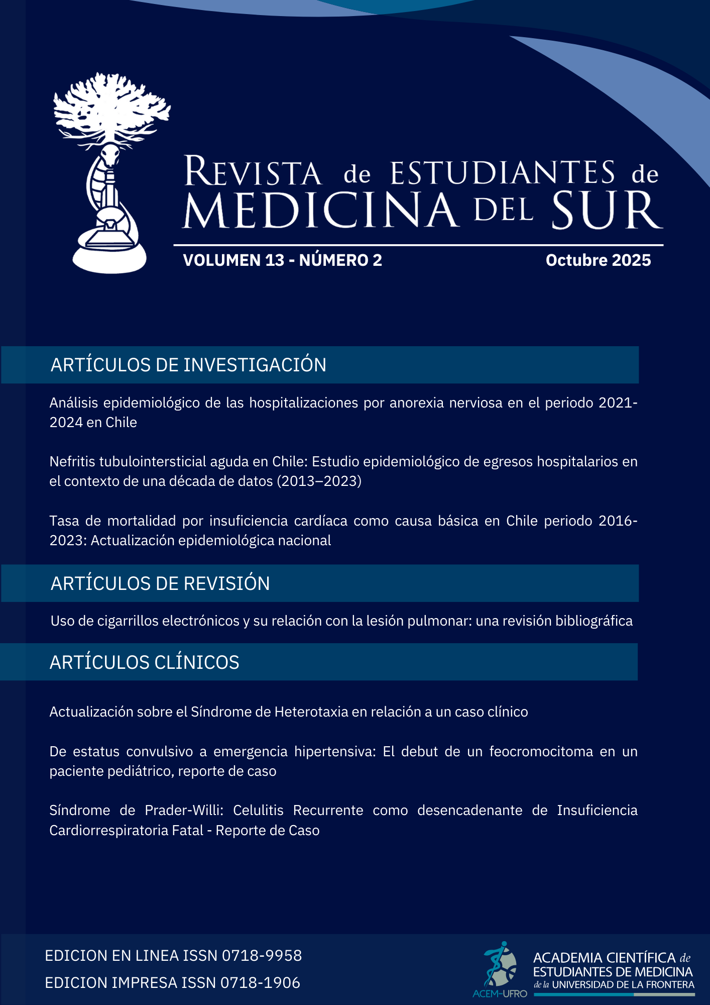 Vol. 13 Núm. 1 (2025)Edición especial publicada con motivo del vigésimo aniversario de la Revista de Estudiantes de Medicina del Sur, en reconocimiento a su contribución al desarrollo de la investigación científica estudiantil en medicina.